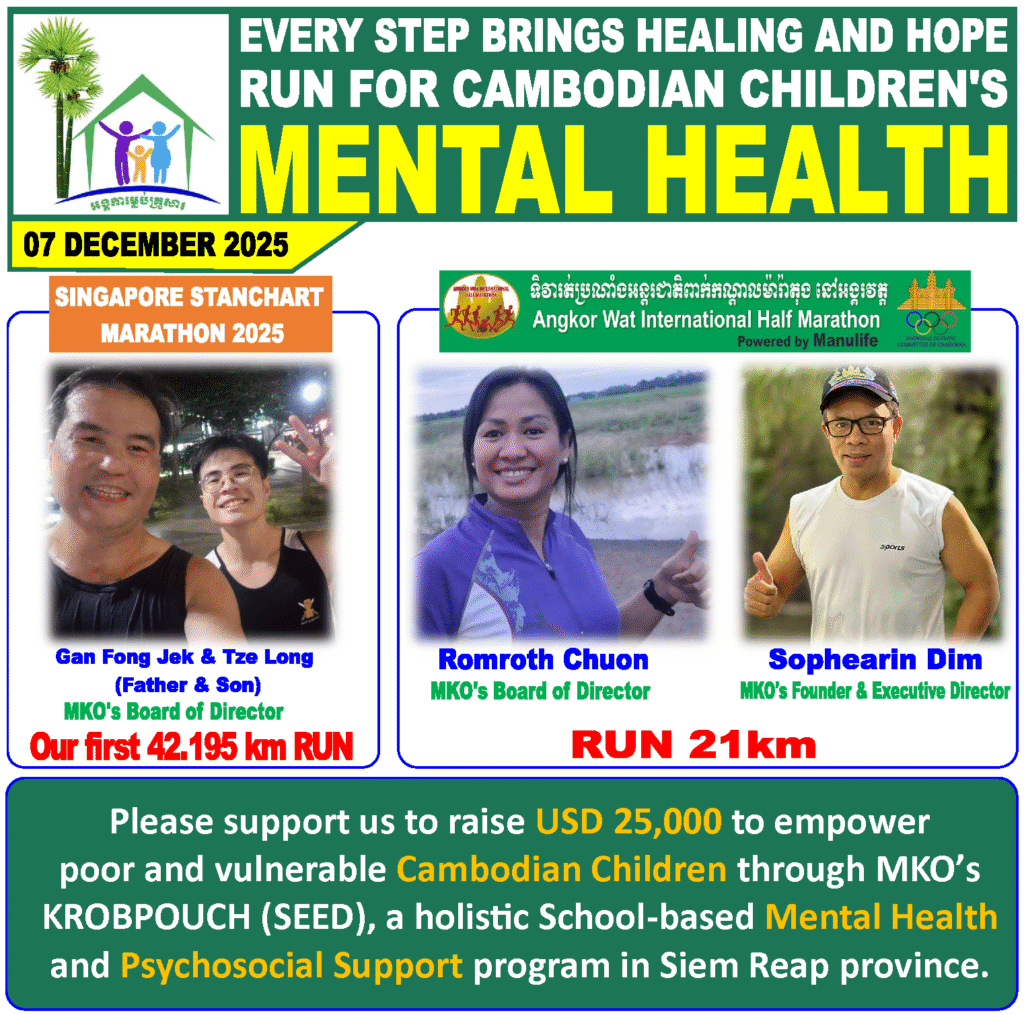 🎯 Together, these four runners aim to raise USD 25,000 for MKO’s KROBPOUCH (SEED) program, a school-based mental health and psychosocial support initiative that nurtures resilience, emotional well-being, and inclusive care for poor and vulnerable children in Siem Reap province.